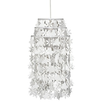 De KARWEI hanglamp Vlinder is een plafondlamp voor gebruik binnenshuis. De lamp is opgebouwd uit een aantal boven elkaar geplaatste cirkels waaraan een riante hoeveelheid bloemen en vlinders is opgehangen. Dit geeft een speels effect en maakt de lamp een echte blikvanger in de ruimte. En doordat de lamp dimbaar en in hoogte verstelbaar is kun je altijd de lichtsterkte en lichthoogte aanpassen naar de gewenste stand. De KARWEI hanglamp Vlinder heeft een E27 fitting en is daarmee geschikt voor de normale maat lamp. De lamp heeft een diameter van circa 28 centimeter en is 90 centimeter hoog.