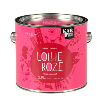 De KARWEI Happy Colours muurverf mat lolly roze 2,5 l maakt onderdeel uit van de Happy Colours serie. Dit is een speciale lijn verven die bedoeld is voor kinderkamers. De muurverf is lolly roze van kleur, dit is een super toffe kleur waarmee meisjes hun eigen kamer extra cool maken. De matte muurverf is goed dekkend en licht reinigbaar. Het is alleen binnenshuis te gebruiken. De verf op waterbasis droogt snel en is reukarm. Het blik bevat 2,5 liter verf, dit is genoeg voor een oppervlakte van 17,5 vierkante meter. De hippe muurverf is ook verkrijgbaar in draken groen, ballet roze en raket blauw.
