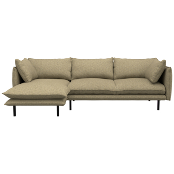 De KARWEI hoekbank Gayle taupe polyester met verlenging links is een royale bank die rust en comfort uitstraalt. De romantische vormen en de losse kussens in de armleuningen zorgen voor een zacht zitcomfort en de diepe zit nodigt uit om heerlijk languit te liggen. Dankzij de hoge poten behoudt de bank, ondanks zijn royale formaat, een luchtig en ruimtelijk gevoel in de woonkamer.