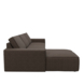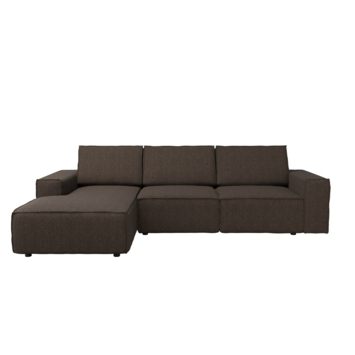 Mack is een echte eye catcher in je ruimte. De volle vormen en armleuningen bieden een uitstekend zitcomfort. De naar buiten gestikte naden en mooie belijning geven je interieur stijl en een fijne sfeer. Het betreft een unieke chaise lounge gemaakt van gerecyclede plastic flessen waarmee hij royale en comfortabele zitplaatsen biedt. Mack heeft een diepe zit voor een heerlijk avondje onderuit op de bank. Bij de samenstelling van de vulling is aandacht besteed aan een optimaal en heerlijk zitcomfort. Door het toepassen van Nosag golfvering en 12 cm schuim met een dichtheid van 30kg/m3 krijg je de volle look en voelt het normaal aan. De rugkussens bestaan uit flexibel schuim met een dichtheid van 23kg/m3, 70% siliconen en 30% schuim vlokken en zorgt onder andere voor een prettig zitcomfort. De stof is gemaakt van polyester en is ideaal voor meubels. Polyester is een kunstvezel. Deze geweven stof is slijtvast, lichtbestendig en goed te reinigen. De bank is gemaakt van sterke en hoogwaardige materialen welke uitgebreid zijn getest. Deze stof bestaat uit garen die onder andere gemaakt zijn van gerecyclede plastic flessen. Van deze stevige en comfortabele bank kun je intensief en langdurig genieten. De unieke combinatie van geweven kunstvezels polyester en polypropyleen met de natuurlijke vezel katoen geven de bank een natuurlijke uitstraling. Deze kwalitatieve bank is gefabriceerd in Europa. Dit artikel wordt geleverd met losse poten, deze zijn makkelijk te monteren met behulp van de bijgeleverde montage instructie. De bank is makkelijk af te nemen met een stofzuiger. Gebruik zachte opzetborstels voor het uitzuigen van de bank om beschadigingen te voorkomen. Polyester neemt weinig vocht en vuil op. Heb je geknoeid, dep het droog met keukenpapier of een theedoek. De chaise lounge links in bruin heeft een prettige zithoogte van 41 cm met een zitbreedte van 222 cm en biedt daarmee ruimte voor drie personen. De bank is ook leverbaar in andere kleuren en uitvoeringen.
