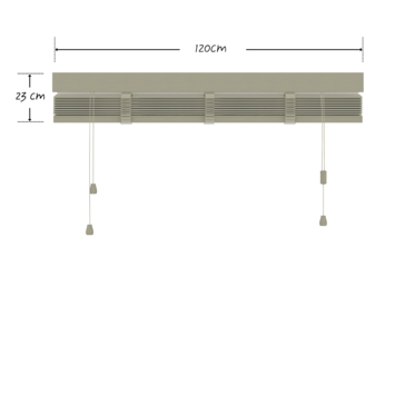 Deze jaloezie heeft lamellen van 50 mm breed, de lamellen kunnen gekanteld worden d.m.v. een trekkoord, waardoor je met de inval van het licht en de mate van inkijk kunt spelen. Wanneer de lamellen gesloten zijn, kunnen er altijd nog kleine lichtstralen tussen de lamellen zichtbaar zijn. Met het optrekkoord is de jaloezie eenvoudig op te trekken of te laten zakken. De genoemde breedte van het product is incl. bevestigingssteunen.
