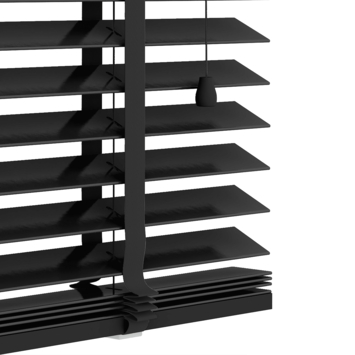 Deze jaloezie heeft lamellen van 50 mm breed, de lamellen kunnen gekanteld worden d.m.v. een trekkoord, waardoor je met de inval van het licht en de mate van inkijk kunt spelen. Wanneer de lamellen gesloten zijn, kunnen er altijd nog kleine lichtstralen tussen de lamellen zichtbaar zijn. Met het optrekkoord is de jaloezie eenvoudig op te trekken of te laten zakken. De genoemde breedte van het product is incl. bevestigingssteunen.