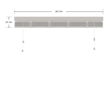 Deze jaloezie heeft lamellen van 50 mm breed, de lamellen kunnen gekanteld worden d.m.v. een trekkoord, waardoor je met de inval van het licht en de mate van inkijk kunt spelen. Wanneer de lamellen gesloten zijn, kunnen er altijd nog kleine lichtstralen tussen de lamellen zichtbaar zijn. Met het optrekkoord is de jaloezie eenvoudig op te trekken of te laten zakken. De genoemde breedte van het product is incl. bevestigingssteunen.