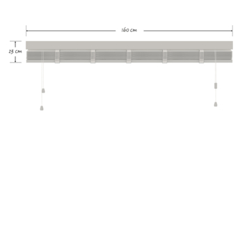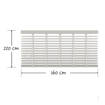 Deze jaloezie heeft lamellen van 50 mm breed, de lamellen kunnen gekanteld worden d.m.v. een trekkoord, waardoor je met de inval van het licht en de mate van inkijk kunt spelen. Wanneer de lamellen gesloten zijn, kunnen er altijd nog kleine lichtstralen tussen de lamellen zichtbaar zijn. Met het optrekkoord is de jaloezie eenvoudig op te trekken of te laten zakken. De genoemde breedte van het product is incl. bevestigingssteunen.