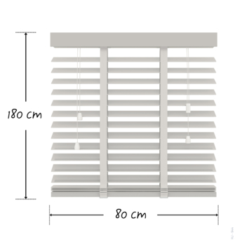 Deze jaloezie heeft lamellen van 50 mm breed, de lamellen kunnen gekanteld worden d.m.v. een trekkoord, waardoor je met de inval van het licht en de mate van inkijk kunt spelen. Wanneer de lamellen gesloten zijn, kunnen er altijd nog kleine lichtstralen tussen de lamellen zichtbaar zijn. Met het optrekkoord is de jaloezie eenvoudig op te trekken of te laten zakken. De genoemde breedte van het product is incl. bevestigingssteunen.