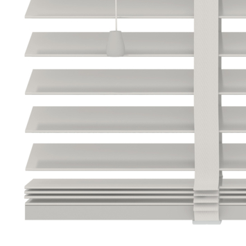 Deze jaloezie heeft lamellen van 50 mm breed, de lamellen kunnen gekanteld worden d.m.v. een trekkoord, waardoor je met de inval van het licht en de mate van inkijk kunt spelen. Wanneer de lamellen gesloten zijn, kunnen er altijd nog kleine lichtstralen tussen de lamellen zichtbaar zijn. Met het optrekkoord is de jaloezie eenvoudig op te trekken of te laten zakken. De genoemde breedte van het product is incl. bevestigingssteunen.
