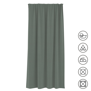 Je kunt dit gordijn met de hand wassen in lauw water en evt. lauw strijken, maar het gordijn is niet geschikt voor de centrifuge en droger.