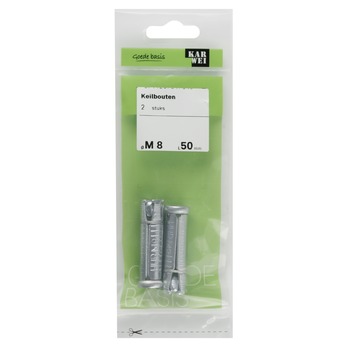 Verzinkte Keilbout incl. moer. Een keilbout is uitermate geschikt voor een bevestiging met een hoge belasting. M8 = Boordiameter 14mm