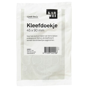 De KARWEI kleefdoek 45x90cm is een reinigingsdoek van het KARWEI eigen merk. De kleefdoek heeft een afmeting van 45 x 90 centimeter. De kleefdoek zorgt ervoor dat alle stofdeeltjes in het doekje worden opgenomen. Een ideaal hulpmiddel om vlak voor het aflakken stof af te nemen. Ideaal dus voor het stofvrij werken.