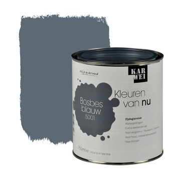 De KARWEI Kleuren van Nu lak zijdeglans bosbesblauw 750 ml maakt onderdeel uit van een uitgebreid actueel kleurenpallet volgens de laatste trends. De zijdeglanzende lak behoudt zijn kleur, ook in donkere ruimtes. De lak op waterbasis droogt snel en is reukarm. De lak is krasvast en is met name bedoeld voor gebruik binnenshuis. Het is geschikt voor zowel deuren als kozijnen, maar je kunt het ook gebruiken op meubelen of voor andere decoratieve toepassingen. Het blik bevat 750 milliliter bosbesblauwe lak, dit is genoeg voor een oppervlakte van 12 vierkante meter. Door de optimale dekking en vloeiing van de lak bereik je snel het gewenste resultaat. De lak kan eenvoudig worden aangebracht met een kwast of roller.
