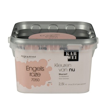 De KARWEI Kleuren van Nu muurverf mat engelsroze 2,5 l maakt onderdeel uit van een uitgebreid actueel kleurenpallet volgens de laatste trends. De dekkende muurverf heeft een matte uitstraling en is afwasbaar. De verf is geschikt voor toepassing in droge ruimtes binnenshuis. De emmer bevat 2,5 liter muurverf in de kleur engelsroze, dit is genoeg voor een oppervlakte van zo'n 20 vierkante meter. De muurverf kan eenvoudig worden aangebracht met een vachtroller. Met deze muurverf breng je trendy accenten aan in woonkamer, hal of slaapkamer.