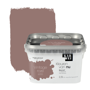 De KARWEI Kleuren van Nu muurverf mat vintage roze 2,5 l maakt onderdeel uit van een uitgebreid actueel kleurenpallet volgens de laatste trends. De dekkende muurverf heeft een matte uitstraling en is afwasbaar. De verf is geschikt voor toepassing in droge ruimtes binnenshuis. De emmer bevat 2,5 liter muurverf in de kleur zinkgrijs, dit is genoeg voor een oppervlakte van zo'n 20 vierkante meter. De muurverf kan eenvoudig worden aangebracht met een vachtroller. Met deze muurverf breng je trendy accenten aan in woonkamer, hal of slaapkamer.