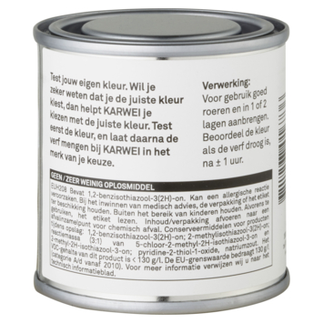 Voordat je grote potten verf in huis haalt, wil je wel zeker zijn van de kleur. Ben je dit nog niet? Maak het jezelf makkelijk met een kleurtester, bijvoorbeeld de KARWEI Kleurtester lak 100ml. Met de kleurtesters van KARWEI kan je de kleur op een klein stukje muur uitproberen, om vervolgens te bekijken wat je ervan vindt. Ben je niet tevreden, dan heb je in ieder geval niet onnodig geld uitgegeven en probeer je gewoon een andere kleur uit. Ben je juist heel blij met het resultaat? Laat de kleur dan mengen met de verf van je favoriete verfmerk. Denk hierbij aan Histor, Flexa of het KARWEI-huismerk. Je vindt de kleurtesters in allerlei glans soorten, onder andere krijtverf, matte of zijdeglans lakverf. Kortom: een slimme manier om de ideale kleur voor je muur te vinden.