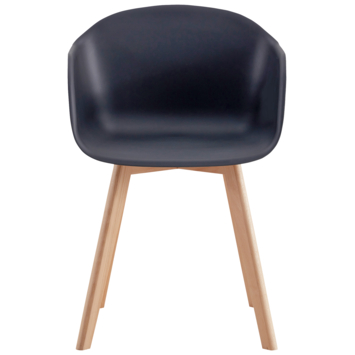Kuipstoel Olli is een kunsstof kuipstoel met houten poten. Het kunststof is gemaakt van gerecycled materiaal. Een moderne, Scandinavische stoel die te gebruiken is aan de eettafel maaar ook erg mooi als losse fauteuil in de woonkamer. De Kuipstoel is in de kleur zwart en is 85cm hoog, 55cm breed en 54cm diep. De kuipstoel is ook verkrijgbaar in groen en roze.