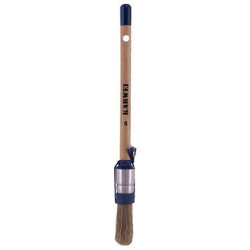 De KARWEI kwast acryl houten steel rond maat 8 is een kwast van het KARWEI eigen merk. De kwast is uitgevoerd met een metalen bus, katoenen woeling, blank gelakte houten steel en een synthetische witte haarbezetting waardoor ze bij uitstek geschikt is voor het aanbrengen van verf op waterbasis. Deze kwast is een prima keus voor de doorsnee verfklus.