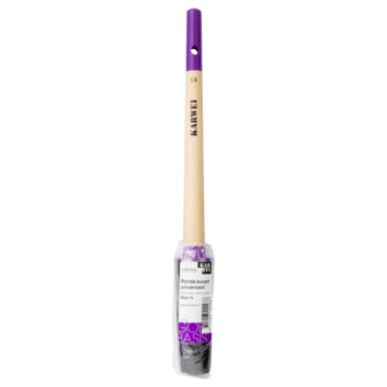 De KARWEI kwast universeel rond maat 14 is een ronde kwast die je gebruikt voor verf op waterbasis en terpentinebasis. Met een breedte van 14 millimeter kun je er kleinere oppervlakken en gedetailleerde randen mee schilderen. De kwast werkt goed op gladde en ruwe ondergronden van hout, metaal of kunststof. De synthetische haren nemen de verf goed op en geven het gelijkmatig af wat handig is bij watergedragen verf. Het houten handvat ligt stevig in de hand maar is minder geschikt bij veel vocht. Deze kwast is geschikt voor lak muurverf en beits.