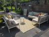 Hele fijne loungebank. Kan buiten in de tuin blijven staan met slecht weer. Makkelijk te verplaatsen. Losse onderdelen kunnen verplaatst worden. Kussen zijn gedeeltelijk water bestendig.
