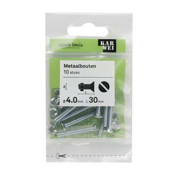 Verzinkte metaalbout, metaalschroef met platte kop incl. moer. Door de vorm van de kop, zal de kop mooi worden verzonken met het materiaal