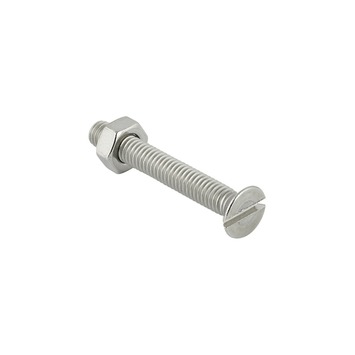 RVS metaalbout, metaalschroef met platte kop incl. moer. Door de vorm van de kop, zal de kop mooi worden verzonken met het materiaal