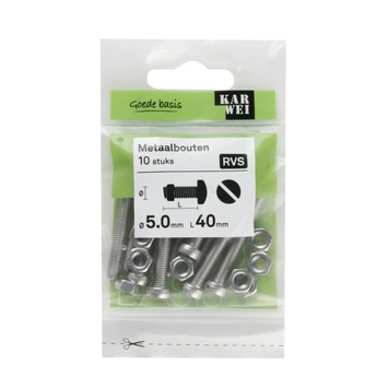 KARWEI metaalbout RVS 5x40 mm 10 stuks