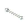 Verzinkte metaalbout, metaalschroef met cilinderkop incl. moer. Door de platte onderkant van de kop, wordt het materiaal stevig verbonden.