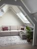 Ruime bank die lekker zit. Erg blij met de stof! Hij staat net dus hopen dat hij niet snel inzakt. Een diepe zit dus heerlijk om languit op te liggen.