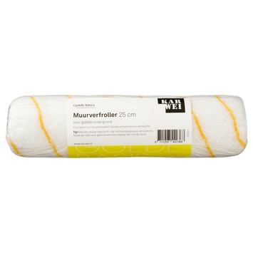 De KARWEI muur-en plafondverfroller voor gladde ondergrond 25 cm is een vachtroller die je gebruikt voor muurverf en plafondverf op waterbasis. Door de breedte van 25 centimeter is deze roller geschikt voor grote oppervlakken zoals muren en plafonds waardoor je sneller werkt. Je gebruikt deze roller op gladde ondergronden zoals gips hout of pleisterwerk. De vacht is van polyacryl wat veel verf opneemt en gelijkmatig verdeelt zodat je makkelijk een egale laag aanbrengt. De roller past op elke standaard beugel van 25 centimeter. Maak hem voor gebruik een beetje nat en haal losse pluisjes weg met een stukje tape.
