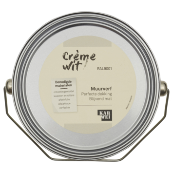 Kies voor een mooi naturel tint op je muur met KARWEI muurverf crémewit. De muurverf heeft een matte finish, is goed dekkend, licht afneembaar en geschikt voor het schilderen van binnenmuren en plafonds in droge vertrekken zoals de woonkamer. Er zijn ook bijpassende lakken in KARWEI Lakverf Kleur!