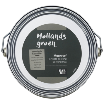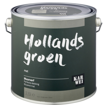 Kies voor een kleurstatement op je muur met KARWEI muurverf hollands groen. Deze muurverf heeft een matte finish, is goed dekkend, licht afneembaar en geschikt voor het schilderen van binnenmuren en plafonds in droge vertrekken zoals de woonkamer. Er zijn ook bijpassende lakken in KARWEI Lakverf Kleur!