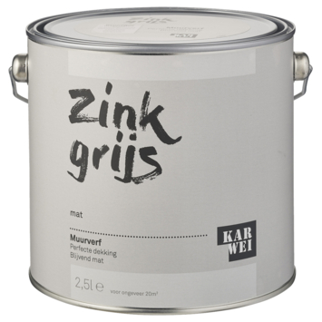 Kies voor een mooi naturel tint op je muur met KARWEI muurverf zink grijs. Deze muurverf heeft een matte finish, is goed dekkend, licht afneembaar en geschikt voor het schilderen van binnenmuren en plafonds in droge vertrekken zoals de woonkamer. Er zijn ook bijpassende lakken in KARWEI Lakverf Kleur!