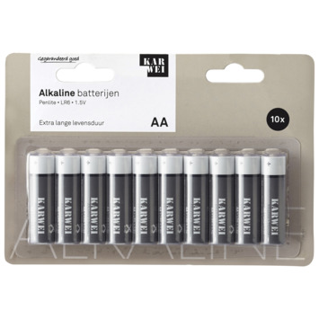 KARWEI batterij AA, een 1,5 volt penlite alkaline batterij met een extra lange levensduur. Verpakking: 10 stuks.