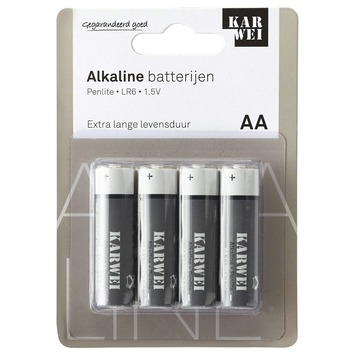 KARWEI batterij AA, een 1,5 volt penlite alkaline batterij met een extra lange levensduur. Verpakking: 4 stuks.