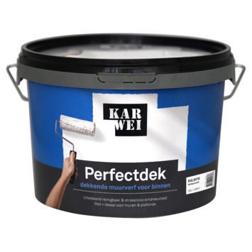 KARWEI Perfectdek muur en plafondverf mat binnen RAL 9016 verkeerswit 2,5 liter is de beste keuze voor een strak en egaal eindresultaat. KARWEI Perfectdek is een optimaal dekkende, afneembare (schrobklasse 2) en matte muurverf. Universeel toepasbaar voor muren en plafonds in droge ruimtes binnenshuis zoals de woon of slaapkamer. De KARWEI Perfectdek heeft altijd een strak en steeploos eind resultaat. Verfbanen en strepen vloeien tijdens het drogen naadloos in elkaar over. Afhankelijk van kleur en kwaliteit van de ondergrond dekt deze verf in één laag. Bij donkere of felle kleuren heb je meer verflagen nodig voor een optimale dekking. KARWEI Perfectdek is beschikbaar in de kleuren Wit, RAL 9010 Gebroken wit en RAL 9016 Verkeerswit.