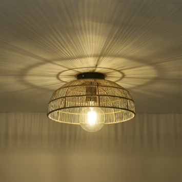 De KARWEI plafondlamp Arlo brengt met zijn touw geweven kap direct sfeer in jouw interieur. De plafondlamp is uitgevoerd in natuurlijk touw en door de open structuur geeft deze lamp een mooi effect. KARWEI plafondlamp Arlo heeft een diameter van 32 cm en een hoogte van 15,5 cm.