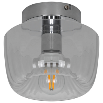 - Elegant ontwerp: Transparant geribbelde kap en chromen plafondplaat voor een luxe uitstraling.