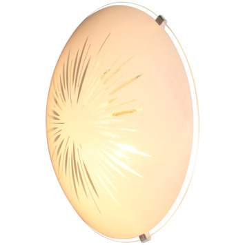 De KARWEI plafonnière Milou is een sierlijke plafonnière. De plafonnière heeft een glazen kap van melkglas met een sierlijk patroon, dit geeft een prettige indirecte verlichting. De plafonnière is geschikt voor een lichtbron met een maximaal wattage van 42 watt en een E27 fitting. De plafonnière wordt geleverd exclusief lichtbron.