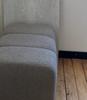- Bekleed met zachte bouclé stof in taupe