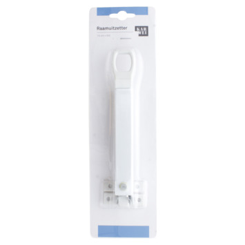 De KARWEI raamuitzetter wit 14 cm buitendraaiende kiepramen is te gebruiken op naar buiten draaiende kiepramen. Het uitzetijzer zet het kiepraam open tot een stand van 14 cm en voorkomt dat deze gaat klapperen door de wind. Het metaal met de witte gelakte coating staat prachtig op lichtgekleurde kozijnen! Wil je toch liever een andere kleur? Een andere kleur raamuitzetter is ook verkrijgbaar bij KARWEI, evenals de bevestigingsmaterialen.