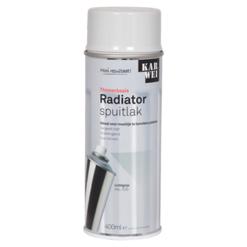De KARWEI radiator spuitlak hoogglans licht grijs 400 ml is een warmtebestendige glanzende lak voor het afwerken van radiatoren en verwarmingsbuizen. De lak verkleurd niet en is eenvoudig te verspuiten. De spuitbus bevat 400 milliliter licht grijze spuitlak, dit is genoeg voor een oppervlakte van 4 vierkante meter. De spuitlak is ook verkrijgbaar in wit en gebroken wit.
