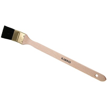 De KARWEI radiatorkwast alkyd maat 2 is een gebogen kwast van het KARWEI eigen merk. Deze kwast is uitgevoerd met een gebogen nikkelen bus en een ongelakte houten steel. Vanwege de haarbezetting van zwart Chinees varkenshaar is deze kwast bij uitstek geschikt voor het aanbrengen van verf op oplosmiddelenbasis. Door de gebogen steel is deze kwast ideaal voor het schilderen op moeilijk te bereiken plaatsen, bijvoorbeeld achter de radiator.