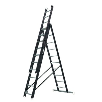 De KARWEI reformladder 3x10 sporten is lichtgewicht, veilig en ook nog eens bijzonder veelzijdig. In de A-stand kan deze ladder als reformladder worden gebruikt waarbij een maximale werkhoogte van 4.30 meter wordt bereikt. Als opsteekladder is de maximale werkhoogte zelfs 7.50 meter. Door de opberglengte van 2.60 meter en het gewicht van 16,5 kg is deze ladder gemakkelijk op te bergen. Daarnaast beschikt de KARWEI reformladder 3x10 sporten over een aantal bijzondere extra's. De stabiliteitsbalk geeft deze ladder maximale stabiliteit en voorkomt het wegzakken van de ladder. De toprollen vergemakkelijken het in- en uitschuiven langs de gevel. Kortom deze KARWEI reformladder is de ideale ladder.