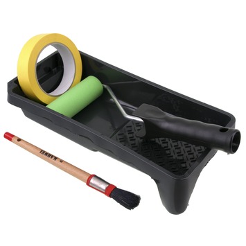 De KARWEI schoolbord- en magneetverfset 5-delig is een complete verfset bestaande uit 1 speciaalverfroller van 10 cm, 1 beugel van 10 cm, 1 verfbakje, 1 ronde kwast maat 8 en 1 rol professioneel afplakband 25mm x 50 meter. Deze set is met name bestemd voor het probleemloos aanbrengen van schoolbord- of magneetverf. De kwast is ideaal voor het verven van oneffen of moeilijk bereikbare plaatsen en de speciaalverfroller is ideaal voor het gericht aanbrengen van schoolbord- of magneetverf op grotere, vlakke ondergronden. Zowel de speciaalverfroller als de kwast zijn vervaardigd uit speciale materialen die garant staan voor een goede opname en afgifte van de schoolbord- of magneetverf.