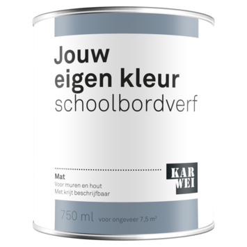 KARWEI schoolbordverf is een sneldrogende, matzwarte schoolbordverf op waterbasis. Geschik voor muren en houten oppervlakken binnenshuis, zoals deuren en kasten. Beschrijfbaar met krijt, onbeperkt afwasbaar en geurarm. In minimaal 2 lagen aanbrengen, overschilderbaar na ± 6 uur. Met krijt te beschrijven na minimaal 48 uur.