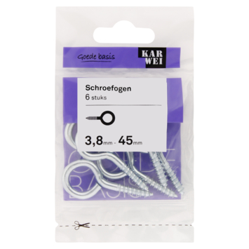 Op zoek naar een verzinkte schroefoog? Met deze haak met gesloten oog voor bevestiging in hout of steen, beton in combinatie met een plug kan dat. Met de KARWEI Schroefogen verzinkt 3,8mm - 45mm 6 stuks voltooi je de klus in een handomdraai.
