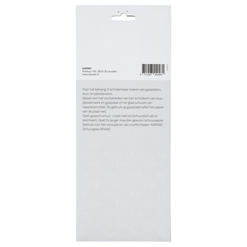 KARWEI schuurgaas muur en plafond K180 is een set van drie fijne vellen van elf komma vijf bij achtentwintig centimeter voor het behang- en schilderklaar maken van gipsplaten, gasbetonblokken en pleisterwerk. Met de open gaasstructuur valt het schuurstof er doorheen zodat je blijft schuren zonder dat het verstopt raakt en het gaas tot drie keer langer meegaat dan gewoon schuurpapier. Je schuurt zowel nat als droog en draait het vel om als de ene kant vol zit. Doordat het gaas niet rafelt op gipsplaten kun je fijn en gelijkmatig over het oppervlak werken zonder stukjes papier achter te laten.