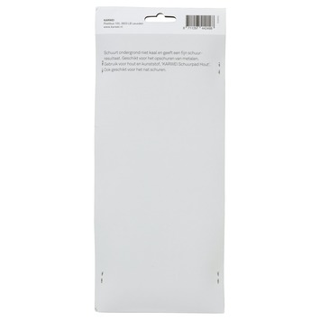 De KARWEI schuurpad metaal is een schuurpad van het KARWEI eigen merk. Geschikt voor het opschuren van metalen of voor het polijsten van verflagen op metalen ondergronden. Schuurt de ondergrond niet kaal en geeft een fijn schuurresultaat. Gebruik voor hout en kunststof, 'KARWEI Schuurpad Hout'. Ook geschikt voor het nat schuren. Uitwasbaar en herbruikbaar. Afmeting 28 x 11 cm.
