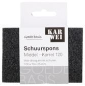 De KARWEI schuurspons fijn K320 is een schuurspons van het KARWEI eigen merk. De schuurspons fijn heeft korrel 320 en is dus zeer geschikt voor het wegwerken van kleine oneffenheden op bijv. houten en metalen ondergronden. De schuurspons vormt zich naar het te schuren oppervlak, wat betekent dat ongelijke oppervlakken zoals radiatoren of geprofileerd meubilair goed behandeld kan worden. De spons kan zowel nat als droog gebruikt worden, is uitwasbaar en herbruikbaar. Nat schuren heeft het voordeel dat er geen stof vrijkomt bij het schuren, er minder krassen in de ondergrond komen en je het te verven oppervlak ook reinigt en ontvet. Nat schuren is dus ideaal voor het super glad schuren voor de laatste laag. Schuur enkel met de schuurspons op al geschilderd hout, nooit op onbehandeld hout, omdat water het hout doet zwellen. De schuurspons heeft een afmeting van 10 X 7 centimeter en is 2.5cm dik.