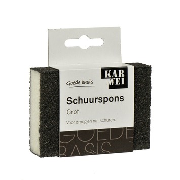 De KARWEI schuurspons grof is een schuurspons van het KARWEI eigen merk. De schuurspons grof is geschikt voor het glad schuren zeer ruwe houten of metalen ondergronden. De schuurspons vormt zich naar het te schuren oppervlak, wat betekent dat ongelijke oppervlakken, zoals radiatoren of geprofileerd meubilair, goed behandeld kan worden. De spons kan zowel nat als droog gebruikt worden, is uitwasbaar en herbruikbaar. De schuurspons heeft een afmeting van 10 x 7 centimeter.