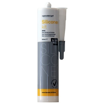De KARWEI Siliconenkit 310ml grijs is een kant en klare siliconenkit op basis van silicone en geschikt voor het afdichten van voegen, naden en kieren. Daarnaast is de siliconenkit blijvend elastisch, waterbestendig, overschilderbaar en uv-bestendig. Deze KARWEI Siliconenkit 310ml grijs in de kleur grijs is zowel binnen als buiten toepasbaar.