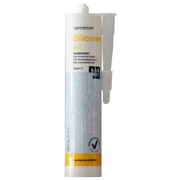 De KARWEI Siliconenkit 310ml transparant is een kant en klare siliconenkit op basis van silicone en geschikt voor het afdichten van voegen, naden en kieren. Daarnaast is de siliconenkit blijvend elastisch, waterbestendig, overschilderbaar en uv-bestendig. Deze KARWEI Siliconenkit 310ml transparant in de kleur transparant is zowel binnen als buiten toepasbaar.